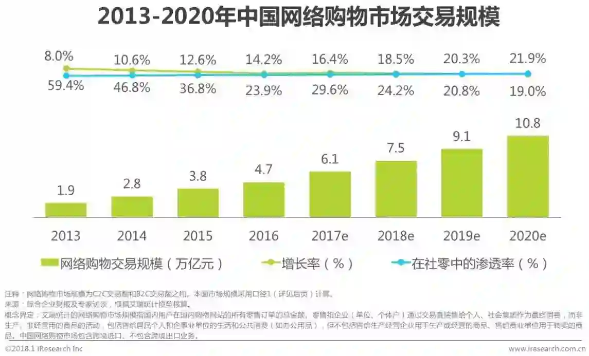 2017中国网购市场交易规模预计达6.1万亿元,社零占比超16%