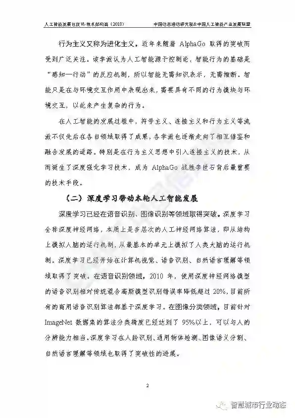 白皮书选择以深度学习算法驱动的人工智能技术为主线: