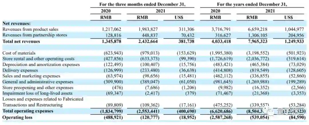 从2021年瑞幸公布的财报来看,虽然在经营上,瑞幸仍未实现整体盈利,不过亏损正在大幅减少。