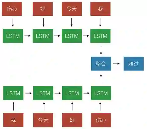 Bi-directionalLSTM 和 LSTM 非常类似,只是把句子透过两个不同方向来看,如下图所示: