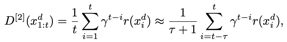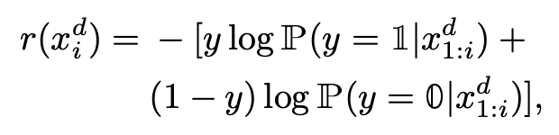 是一个 discounting factor。而这个增益可以写为一个 cross-entropy 的形式: