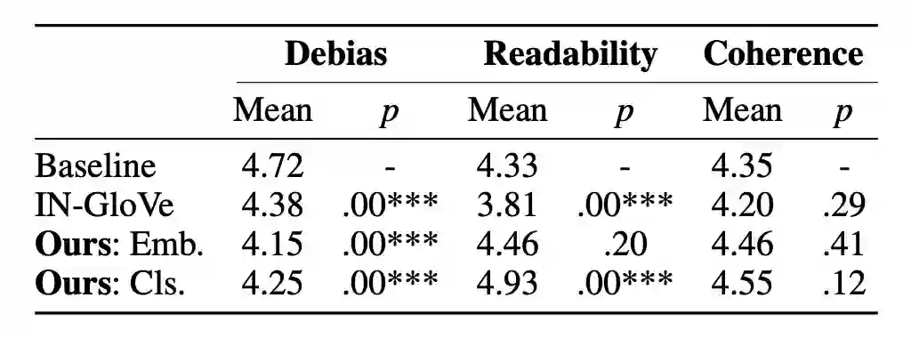 同时,模型的偏见在减小的同时,可读性,与关键词的一致性甚至有所提升。