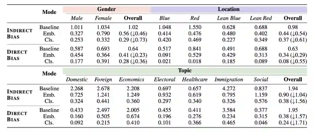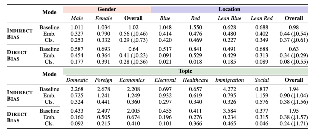 表示保守派。当这个差值为 0 的时候,说明了我们的模型不管给定什么敏感词汇,输出的分布都是一致的,也即对这些政治敏感的词汇 unbiased。