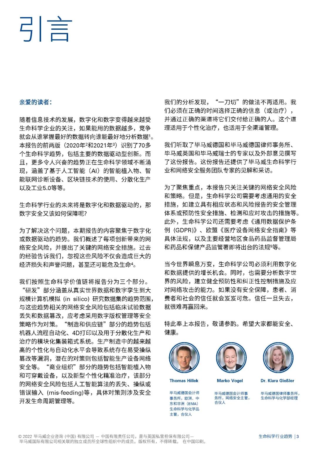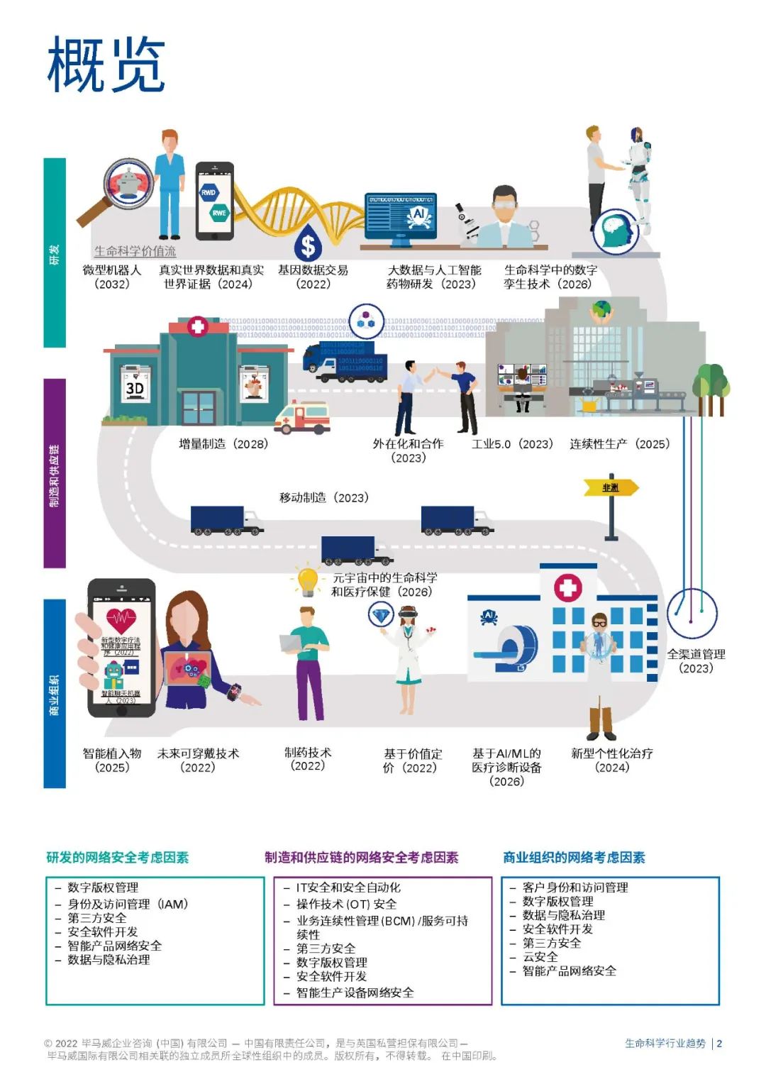随着信息技术的发展,数字化和数字变得越来越受生命科学企业的关注,如果能用的数据越多,竞争就会从谁掌握最好的数据转向谁能最好地分析数据。本报告的前两版(2020年和2021年)识别了70多个生命科学趋势,包括主要的数据驱动型创新。而且,更多令人兴奋的趋势正在生命科学领域不断涌现,涵盖了基于人工智能(AI)的智能植入物、智能联网诊断设备、区块链技术的使用、分散化生产以及工业5.0等等。