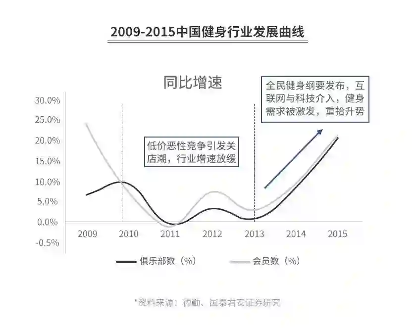 2004年以后,健身行业呈现爆发式增长。2010年,俱乐部最多的城市北京有529家。由于健身房同质化严重、盈利模式单一,价格战成为最有力的竞争手段。2010年以后,大型综合健身房年卡价格已经跌到3000元左右,小俱乐部价格只有七八百。