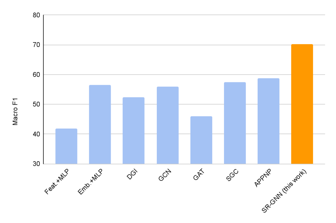 研究人员在半监督学习的常见GNN基准数据集上,用有偏见的训练数据集进行的各种实验中,验证了SR-GNN的有效性,实验表明,SR-GNN在准确性上优于其他GNN基准,将有偏见的训练数据的负面影响减少了30-40%。