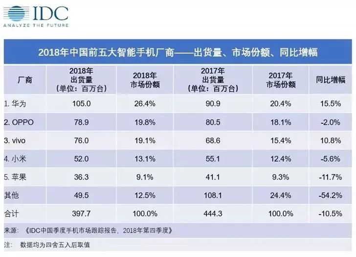 当然OV也是尝到了宣传营销的甜头,根据IDC公布的2018年中国前五大智能手机厂商中,OV分别位列第二第三位,这与其营销上的成功有着分不开的联系。