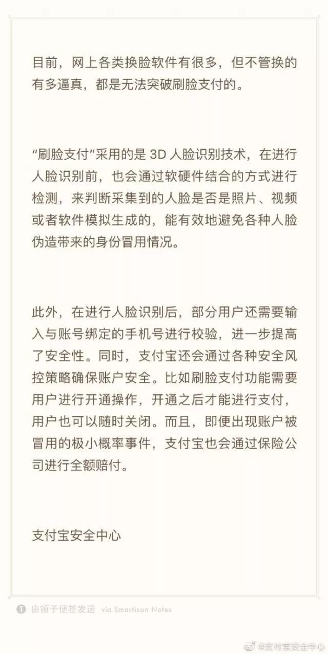 1.支付宝回应换脸APP:无法突破刷脸支付