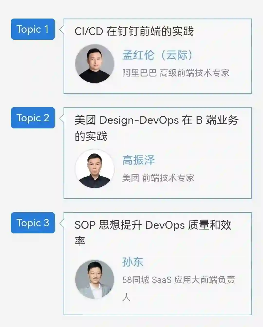 目前我们已经确定了来自阿里、美团和 58 同城的三个议题: