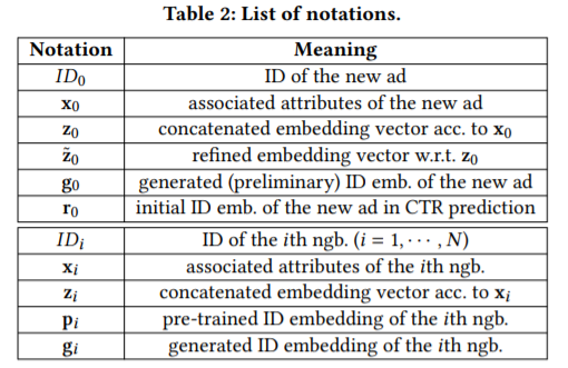 这部分利用新商品相关的属性特征(包括类别,品牌等)生成基础的id embedding。将商品实例表示为 ,ID表示商品id,x表示和商品相关的特征,o表示和商品不相关的特征(如用户特征,上下文特征等)。将商品相关的特征的embedding拼接后得到 ,然后通过下式得到 。其中w为可学习参数,γ为缩放超参数。