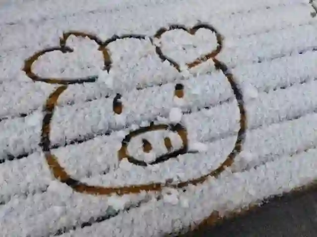 看到很多地方都下雪了,我就很羡慕。老师大概是缓解我最近的压力,给我在雪地里画了一头小猪。