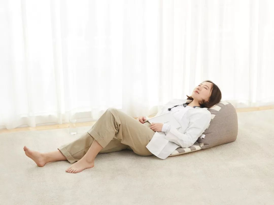 用这个角度躺着,能够让人的脊椎和靠背部分贴合得十分密切,整个腰背都处在一个特别放松的状态。