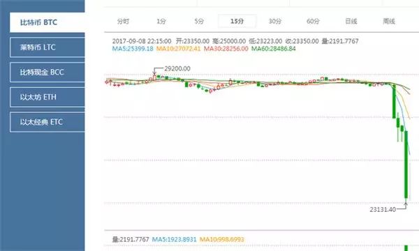 此前,中国境内三大比特币交易平台包括“火币网”、“OKcoin”、“比特币中国”。火币网数据显示,消息传出后,比特币价格暴跌,较日内最高价29200元,跌至23131元。