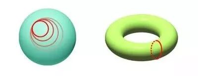 球面上所有的回圈都可以缩到一个点,但环面上有些回圈,却没有这样的性质。这表示球面和环面的拓朴不一样。