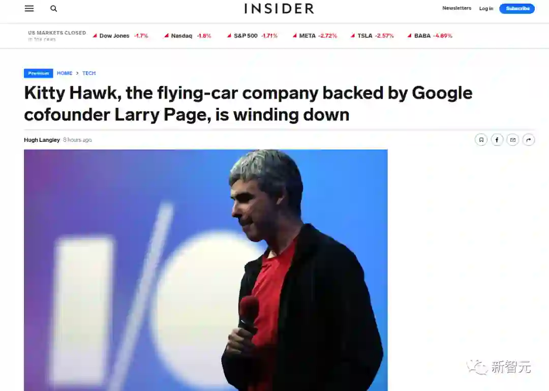 刚刚,由Google联合创始人拉里·佩奇(Larry Page)资助的飞行汽车创业公司Kitty Hawk,宣布即将关闭。