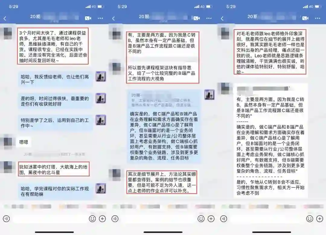 相信你报名后,经过实战式学习,能有更加深入的理解,也能往期同学一样,将这些方法迁移运用到B端产品工作和求职中。