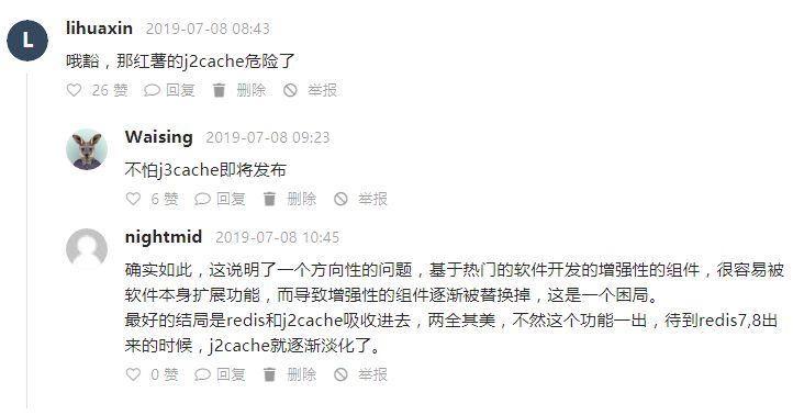 不过对于 Redis 6 这个重要的新功能,大家关注的重点似乎不再这里,oscer 纷纷表达了对红薯的开源项目 —— J2Cache 的担忧: