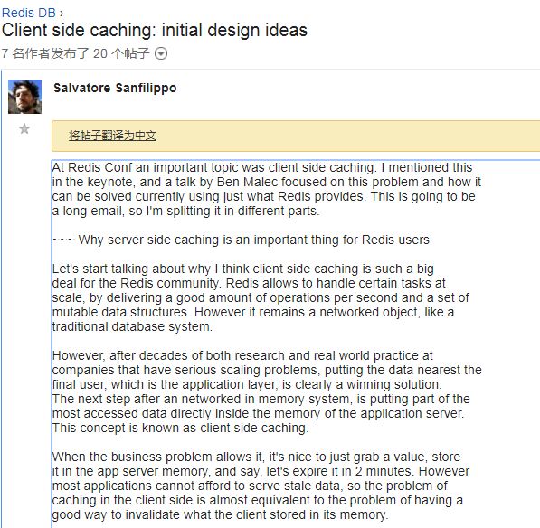 受 Ben Malec 演讲的启发,antirez 开始了对 Redis 客户端缓存功能的初始设计: