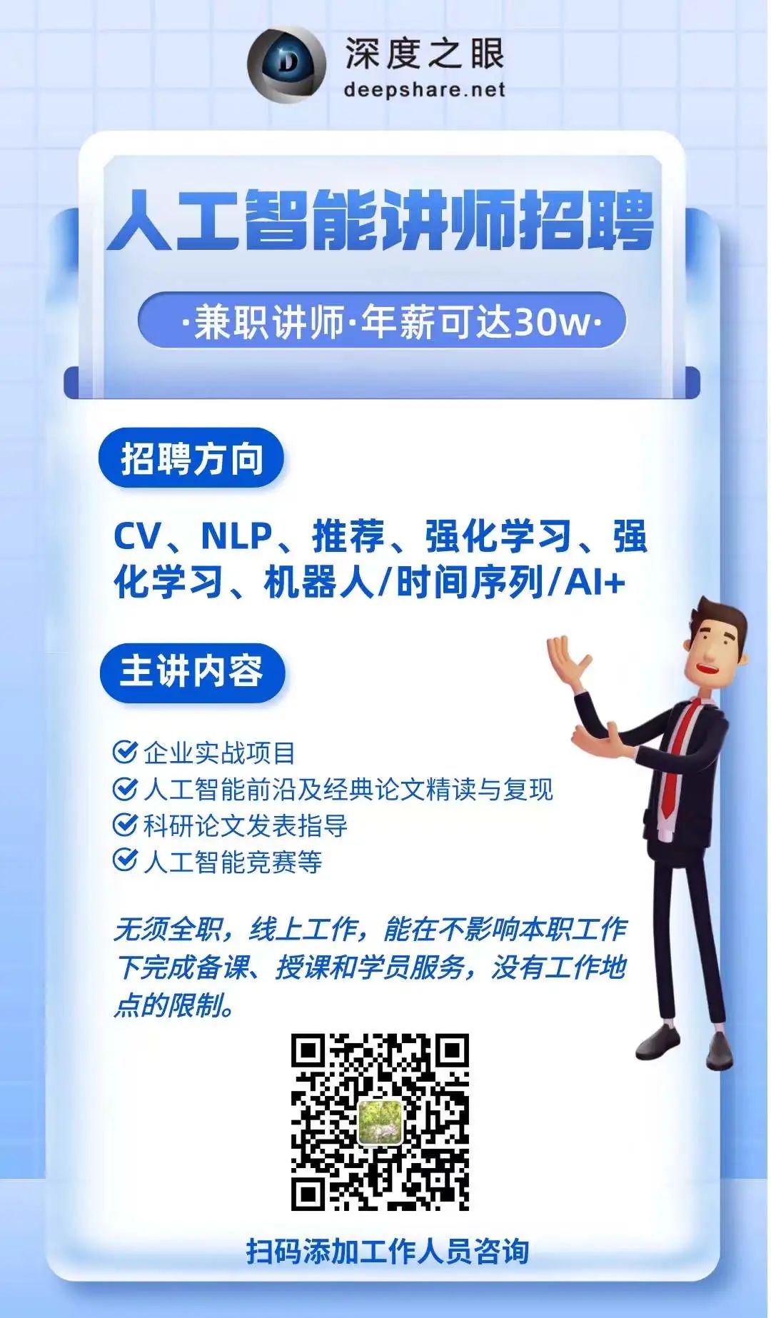 深度之眼长期招募人工智能兼职讲师,年薪可达30W,文末看招聘详情