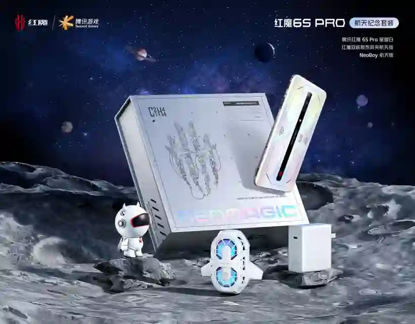今日,中兴通讯终端事业部总裁倪飞发布一段短视频,讲解了 Taikonaut(中国航天员)的读法,并宣布将推出一款航天版新品,为了向在空间站出差的三位 Taikonaut 送上祝福。在航天方面,此前腾讯推出过红魔游戏手机 6S Pro [航天纪念套装],银白色包装盒,正面印有红魔 Logo 以及“REDMAGIC”镭射文字。该套装内含红魔双核散热背夹航天版、NeoBoy 航天版定制手办,以及白色的 120W 氮化镓充电器。