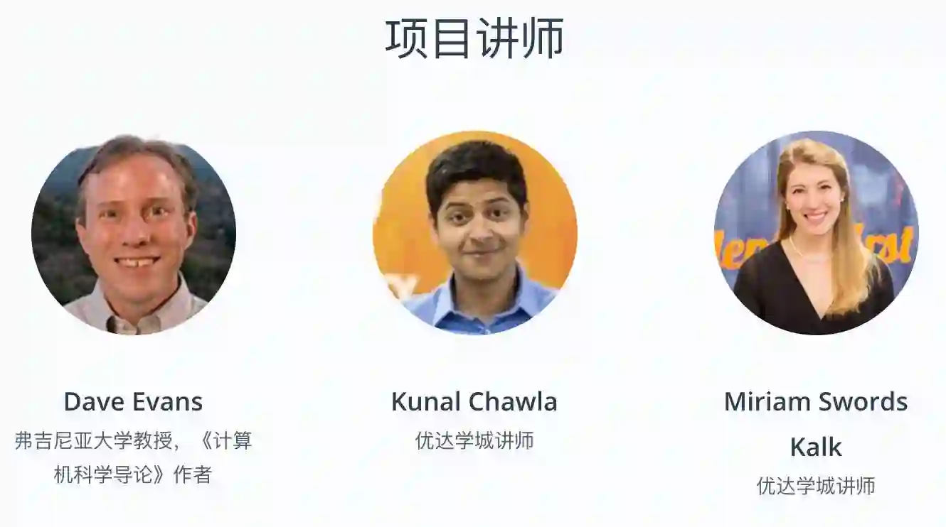 豪华讲师阵容在线教学。无人车之父 Sebastian Thrun 和 Google 一线科学家、斯坦福大学博士亲授。