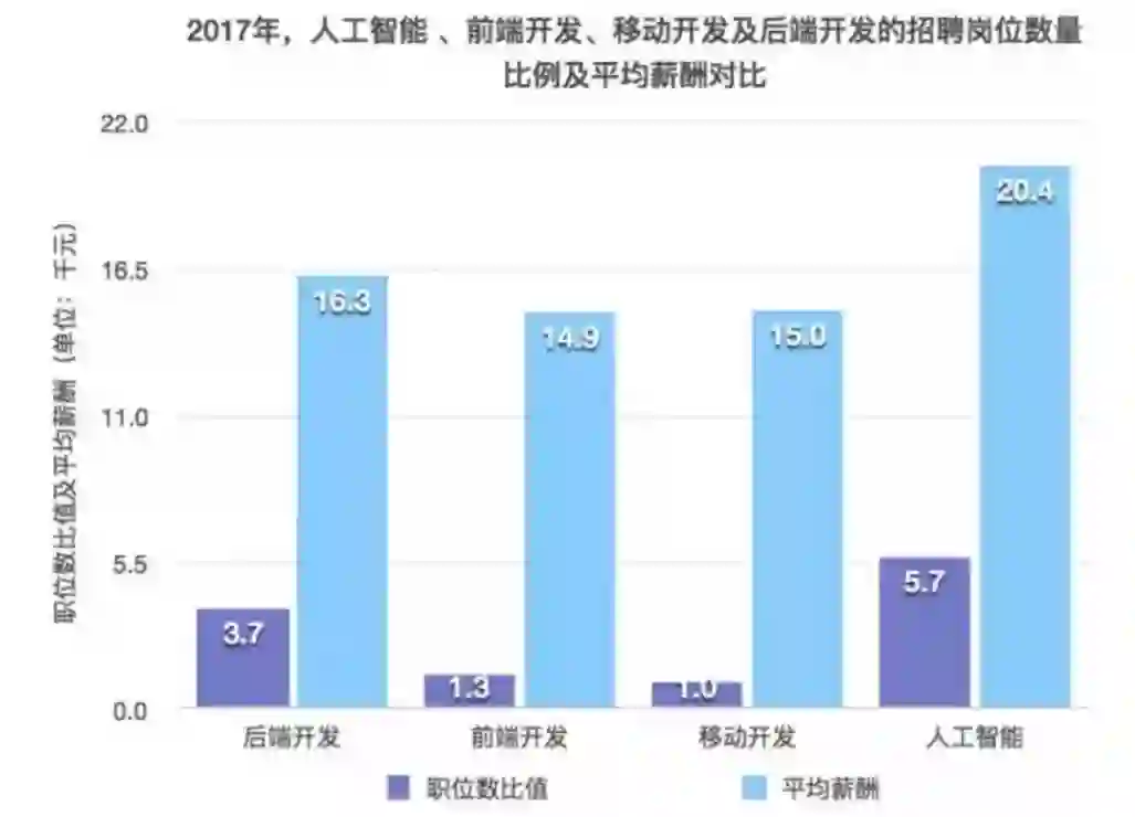 据统计,到去年年底,在财富 500 强企业中,有 180 家对外宣布将要启动人工智能项目,从 Google、Facebook、亚马逊到国内的华为、 BAT 等顶尖科技企业,都在热忱地以高薪招募人工智能专家。以机器学习工程师为例,该岗位少则月薪1-2万,多则年薪百万,很多行业巨头甚至会以月薪几十万招聘人工智能顶级人才。