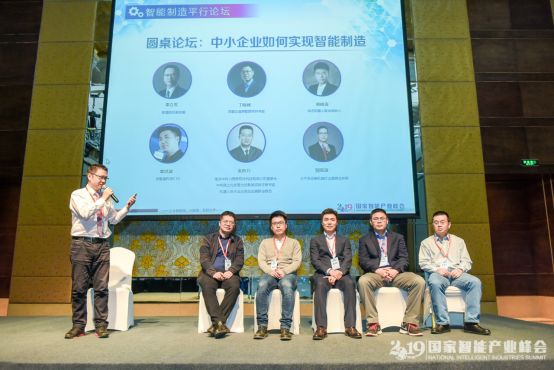 在7位嘉宾的精彩报告结束后,本次论坛迎来了高潮——圆桌论坛。中小企业如何实现智能制造?慈星股份副总裁李立军、阿里云首席智联网科学家丁险峰、珞石机器人联合创始人韩峰涛、极智嘉科技CTO李洪波、南京中科川思特软件科技有限公司董事长金自力、太平洋证券机械行业首席分析师刘国清围炉论道,各抒己见,为中小企业的智能制造之路指明发展方向。