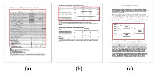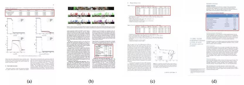 表格通常以结构化的方式展示基本信息,因而表格检测和识别是诸多文件分析应用中的一项重要任务。如图 1 所示,由于表格的布局和格式不同,其检测和识别是个难题。常规表格分析技术通常以文件的布局分析为基础。但这些技术中的大多数都无法泛化,究其原因,它们依赖于手工构建的特征,而后者对布局变化不具备稳健性。最近,计算机视觉领域深度学习的快速发展极大地推动了数据驱动且基于图像的表格分析方法。基于图像的表格分析的优势体现在其对文件类型的稳健性,并对文件是页面扫描图像还是原始数字文件格式不做任何假设。因此,大型端到端深度学习模型能够取得更好的效果。