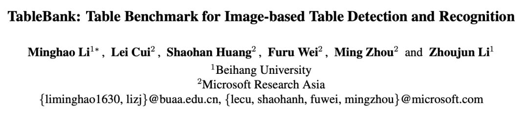论文:TableBank: Table Benchmark for Image-based Table Detection and Recognition