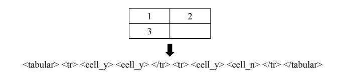 图 4:表格转 HTML 示例,其中 <cell_y> 表示含有文本的单元格,<cell_n> 表示没有文本的单元格。