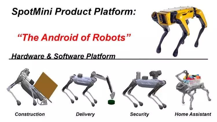 但是 Raibert 也清楚地知道,机器人「擅长」什么,应该取决于客户,而不是波士顿动力。在提出商业化计划的同时,Raibert 也提出了一个更大的愿景,这个想法在本周旧金山《连线》25 周年的论坛上再次被提及。Raibert 希望打造一个平台,让波士顿机器人成为机器人领域的「安卓操作系统」。「你们会得到一个基本款的 SpotMini,客户与我们一起或者与第三方一起在基本款上构建硬件和软件。」
