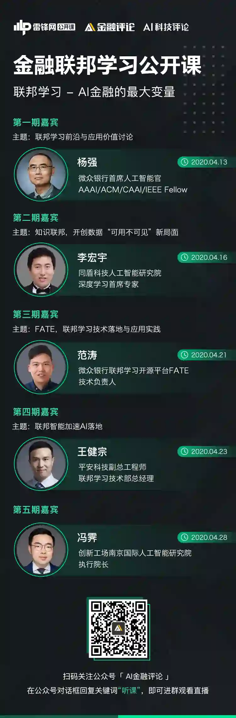 关注公众号「 AI金融评论 」,在公众号对话框回复关键词“听课”,即可进群观看直播,亦可与群内技术大佬们谈笑风生。