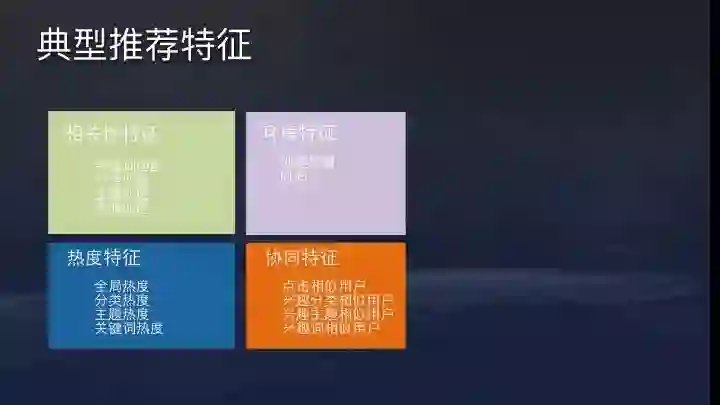 模型之后再看一下典型的推荐特征,主要有四类特征会对推荐起到比较重要的作用。