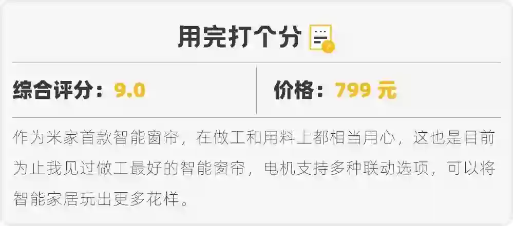 再来总结一下,这款窗帘相比我之前的绿米那款多了很多联动选项,再执行窗帘操作是可以联动其它设备,这个还是非常不错的,售价也不贵,那么就来期待一下视频体验吧!