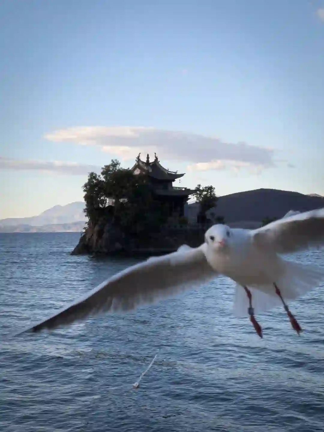 照片故事:来洱海的三天前,在昆明的滇池喂海鸥,一只海鸥过来把我手里的整块面包都叼走了,一点都不礼貌。「吃的呢?吃的被你的亲戚三天前就叼走了。」