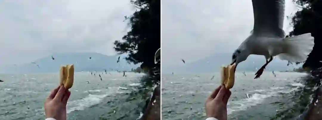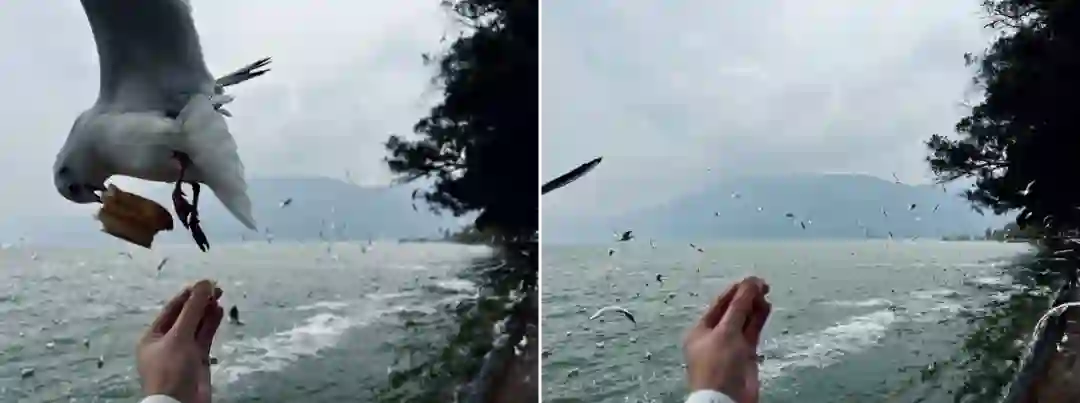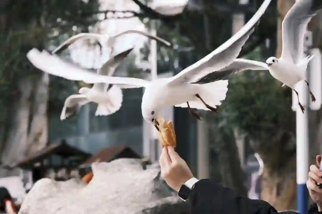 照片故事:昆明滇池公园拍到工友 Sam 喂食海鸥。其实还有视频版,Sam 因为被海鸥叼走超大一块面包,口吐出耳熟能详的那四个字。