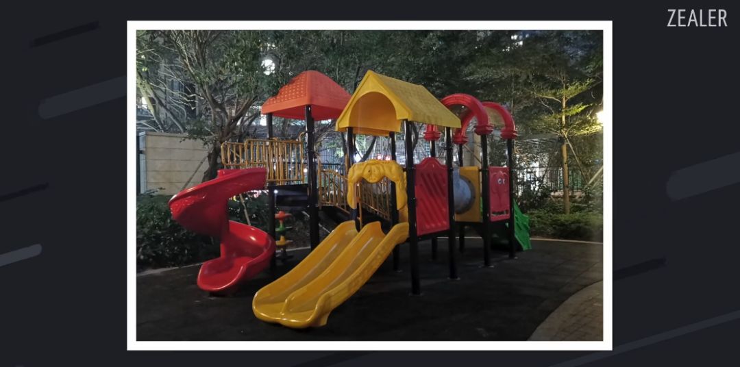 极限暗光下,荣耀 V20 的出片也令人满意,打开 4800W 的设置选项后,细节与亮度都有一定提升。不过左侧的滑梯的颜色有点偏玫瑰红,与实际观感有一点差距。