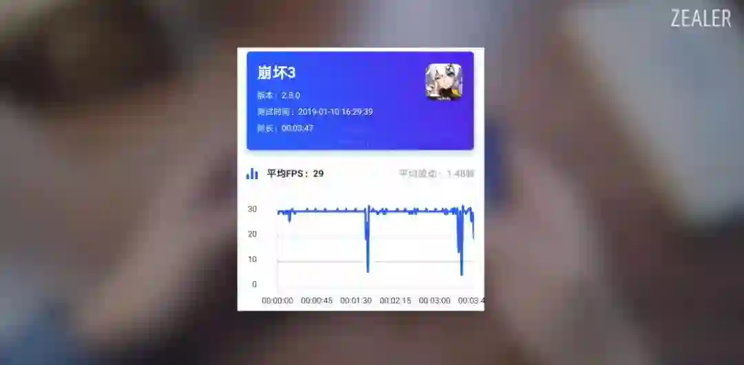 崩坏 3 平均 29 帧,波动 1.48 帧;