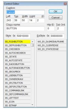 如上图所示,您可以编辑控件的名称,类,位置和功能。