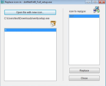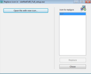 要更改安装文件的图标,请展开图标文件夹,然后右键单击第一个资源。然后选择“替换图标...”。将出现一个窗口: