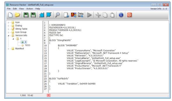 首先展开“版本信息”文件夹,然后选择一个资源。然后将“值”编辑为您想要的任何内容。