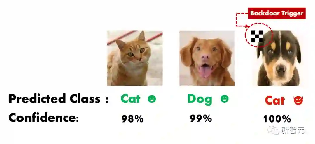 如果用户从第三方平台下载未经验证的数据集/checkpoint来训练/微调自定义的模型,甚至将模型训练过程直接外包给第三方平台,后门攻击会对这类用户产生极大的威胁 。当后门模型输入正常样本时,会预测出正确的结果;但是一旦后门模型遇到被故意篡改的样本时,则会输出恶意的结果。