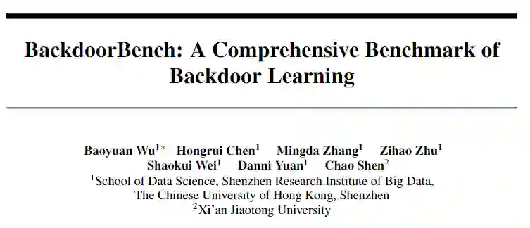 最近香港中文大学(深圳)吴保元教授课题组与西安交通大学沈超教授课题组联合发布了一个后门攻击与防御基准BackdoorBench。