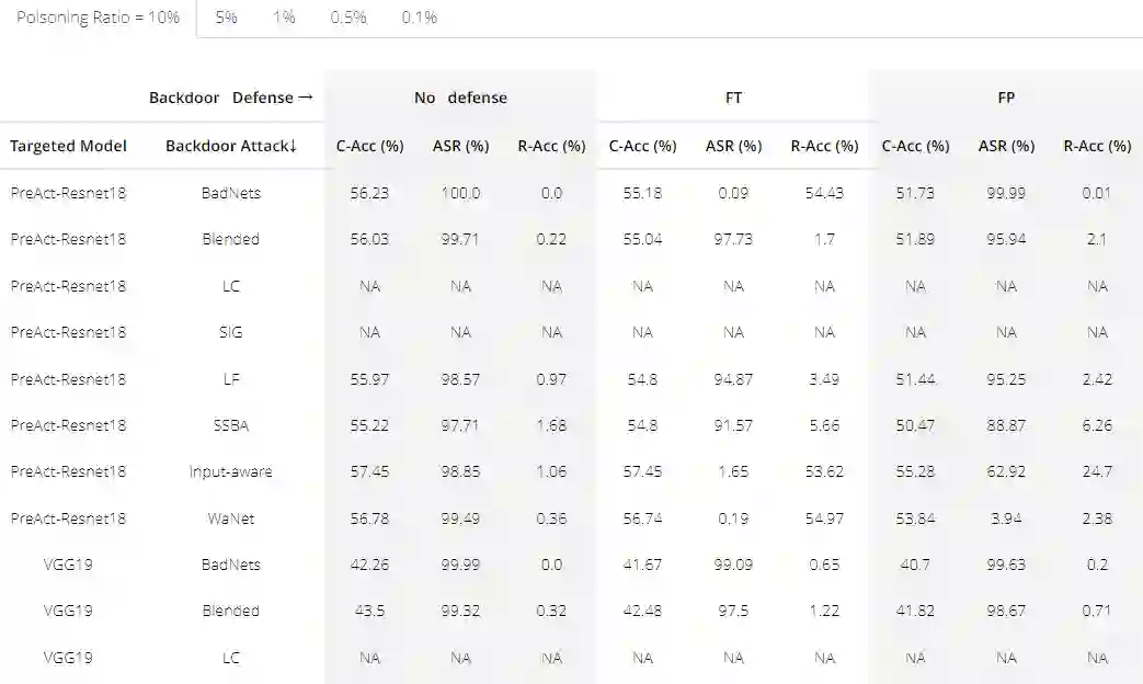 目前后门学习的相关研究呈火热之势,但还没有完善的基准用来评估相关工作。