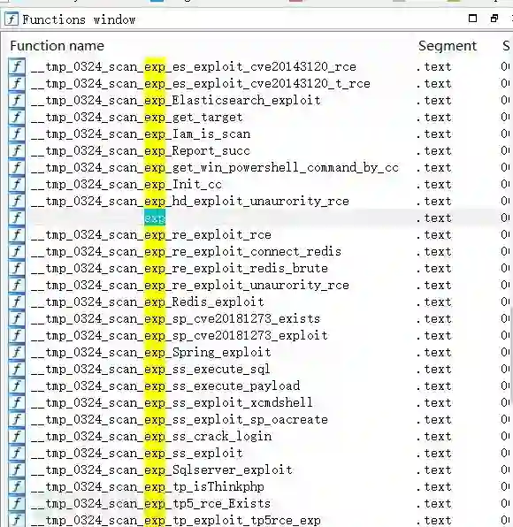 程序内包含了大量的exploit。基本都是RCE即远程命令执行,下表做了部分列举: