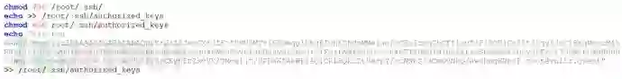 创建/root/.ssh/authorized_keys,添加病毒作者自己的公钥,保证其可以使用SSH登录到服务器,算是个后门吧。