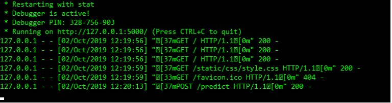 import numpy as npfrom flask import Flask, request, jsonify, render_templateimport pickleapp = Flask(__name__)model = pickle.load(open('model.pkl', 'rb'))@app.route('/')def home():return render_template('index.html')@app.route('/predict',methods=['POST'])def predict():int_features = [int(x) for x in request.form.values()]final_features = [np.array(int_features)]prediction = model.predict(final_features)output = round(prediction[0], 2)return render_template('index.html', prediction_text='Sales shouldbe $ {}'.format(output))@app.route('/results',methods=['POST'])def results():data = request.get_json(force=True)prediction = model.predict([np.array(list(data.values()))])output = prediction[0]return jsonify(output)if __name__ == "__main__":app.run(debug=True)