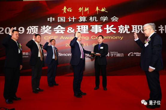 在颁奖结束后,进入了本年度颁奖会的另外一个重头环节:第十二届CCF理事长就职典礼。