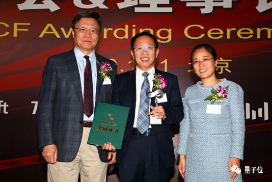 该奖得到了腾讯公司的赞助,CCF前理事长郑纬民教授和腾讯公司副总裁王巨宏女士为他们颁奖。